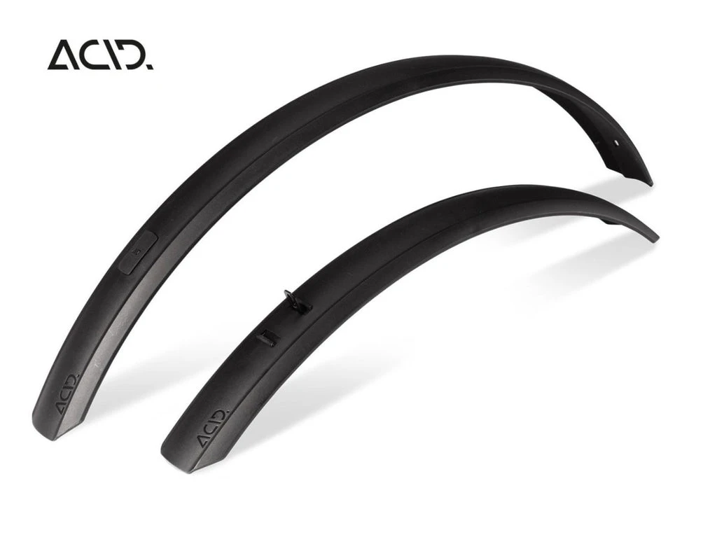 Click and go! Schutzblechmontage war noch nie so praktisch! Das ACID Mudguard Set MTB 60 Click ist mit den meisten 27,5″-29″ Mountainbikes und einer maximalen Reifenbreite von 2,25’’ kompatibel. Dank der speziellen Adapterlösung für CUBE Mountainbikes ab dem Modelljahr 2019 gelingt die Montage super schnell. Die verwindungssteife Profilgestaltung machen die Schutzbleche widerstandsfähig und langlebig.