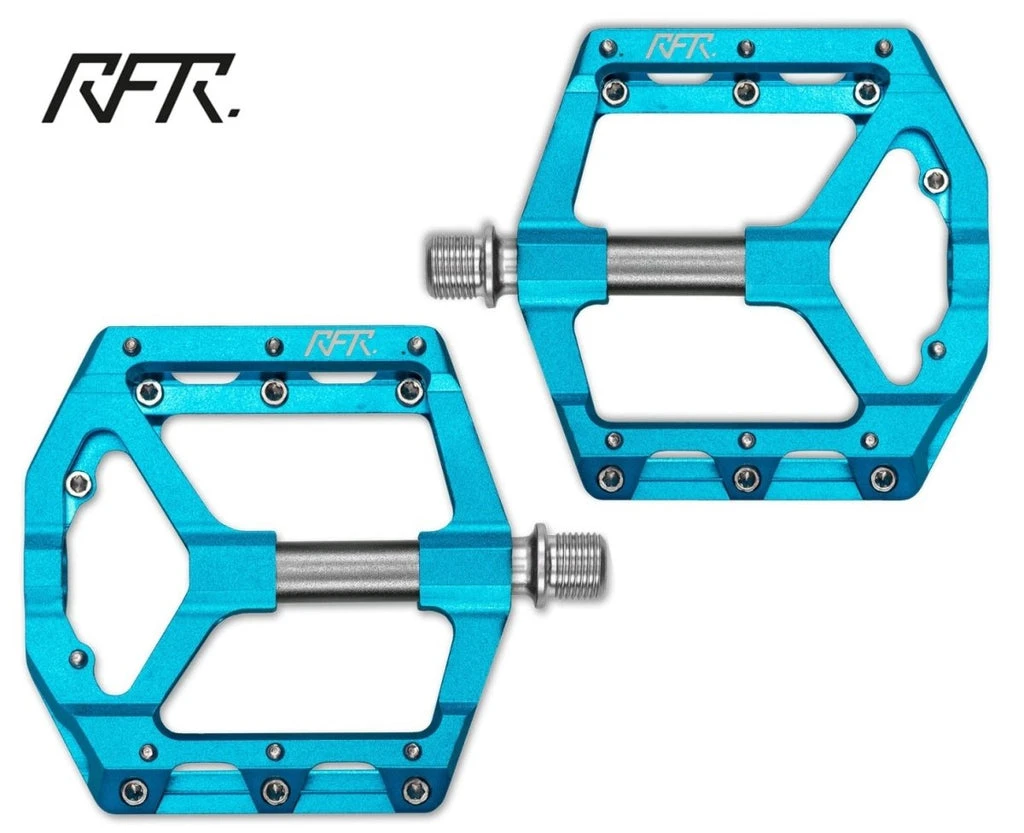 - hochwertig CNC gefrästes Flat Pedal; aggressiv flaches Design; austauschbare Pins; große, griffige Standfläche; dreifach gedichtetes Industrielager mit LSL bushing; CrMo-Achse