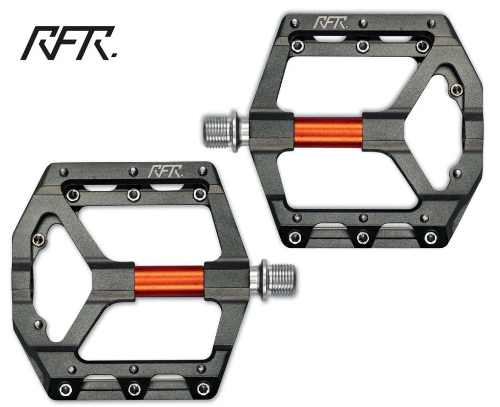 Hochwertig CNC-gefrästes Flat-Pedal aus Aluminium mit einem aggressiv flachen Design. Die austauschbaren Pins und die große, griffige Standfläche geben besten Grip und Sicherheit. Mit CrMo-Achse für eine lange Lebensdauer.