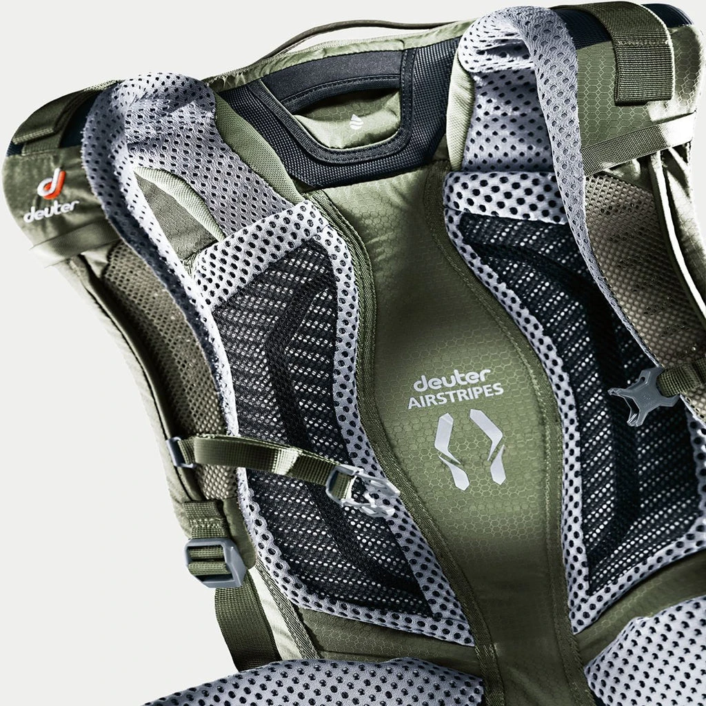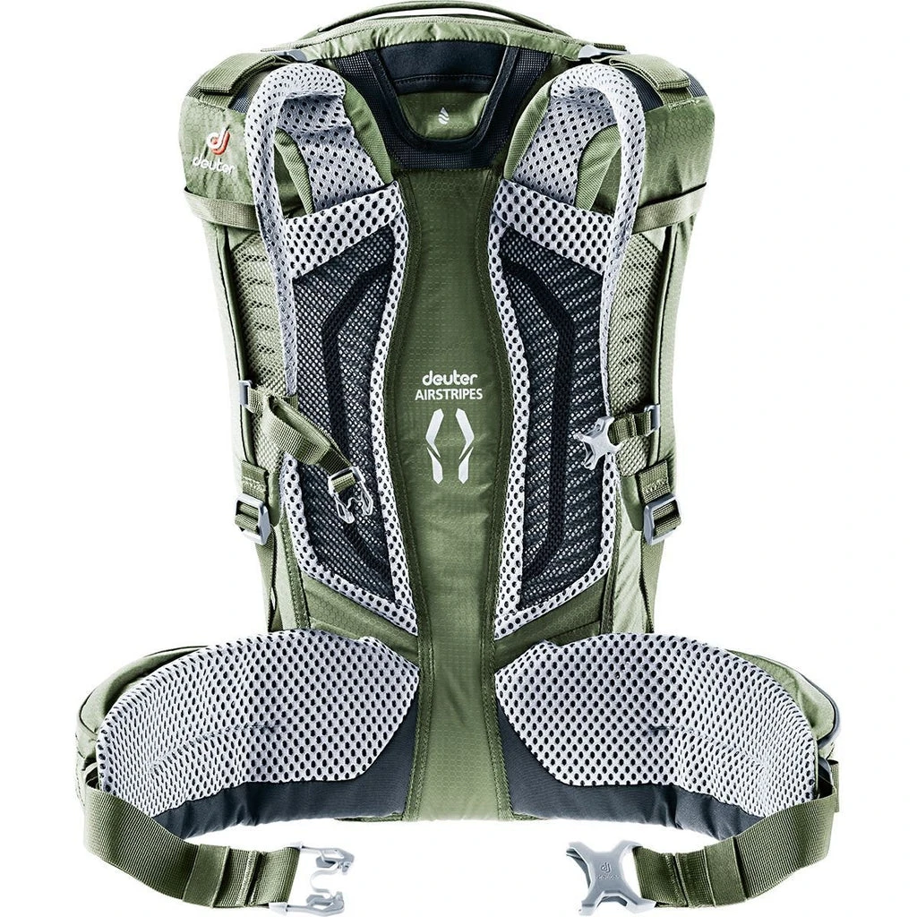 Selbst auf ausgedehnten Biketouren bekommt man im Trans Alpine Pro 28 Rucksack von Deuter alles unter – und zwar gut organisiert und mit bestmöglichem Tragekomfort. Besonders das Airstripes Pro System zeichnet sich nach langen Tagen im Sattel und bei Tragepassagen aus. Dafür setzen die Hüftflossen tief innen an und ziehen weit herum, um das Gewicht fast komplett aufzunehmen. Die ergonomischen Schulterträger sind flexibel aufgehängt, und gehen so jede Bewegung mit. Dazu lässt das System genug Luft an den Körper, um einen Hitzestau zu vermeiden, dennoch ist es nah genug am Rücken dran, damit der Rucksack auf trailigen Abfahrten kompakt am Rücken bleibt.