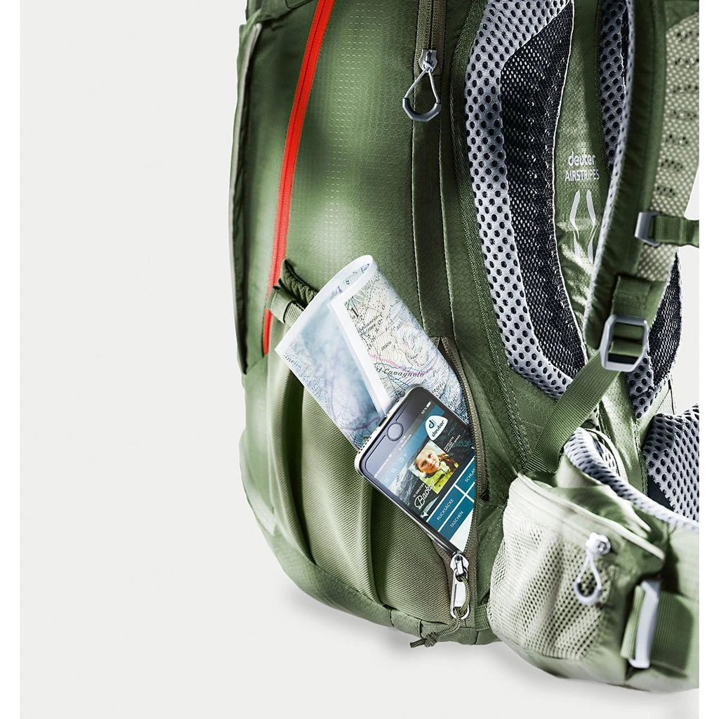 - Seitentasche(n), separates Bodenfach, Innentasche(n) im Hauptfach, Hüftgurttasche(n), Fronttasche(n), Wertsachenfach, interne Organisationsfächer