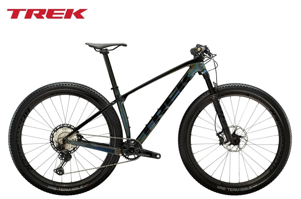 Einen leichten und steifen Carbonrahmen mit trailglättendem IsoSpeed, eine leichtgewichtige FOX Step-Cast-Federgabel mit Remote-Lockout, einen extrem geschmeidigen Shimano XT-Antrieb mit extraleichter, extrasteifer Carbonkurbel, einen Carbonlenker, eine Carbonsattelstütze und extrabreite, extraschnelle Bontrager Kovee Elite 30-Carbonlaufräder samt Rapid Drive-Hinterradnabe für eine verzögerungsfreie Beschleunigung von der Startlinie weg.