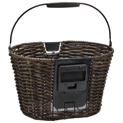 Edel und formschön – ovaler Lenkerkorb aus extra grobem, runden Kunststoffgeflecht, das weder vergraut noch versprödet. Eine robuste pulverbeschichtete Metallstruktur hält den Korb in Form, die geschlitzte Rückwand trägt die stufenlos verstellbare Adapterplatte. Mit komfortablem Griff. So macht das Einkaufen Spaß – einfach Taste drücken und mitnehmen.
